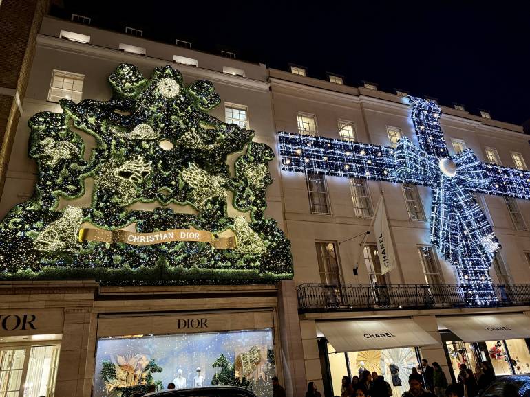 The high-end establishments in this ritzy shopping street always go large at Christmas; look out for the traditional Ralph Lauren Giving Tree, where you can dedicate a star to a loved one by donating to the Royal Marsden Cancer Charity. This year we love Dior’s sparkling mythical creatures and Chanel’s huge twinkling bow in classic Chanel tweed.