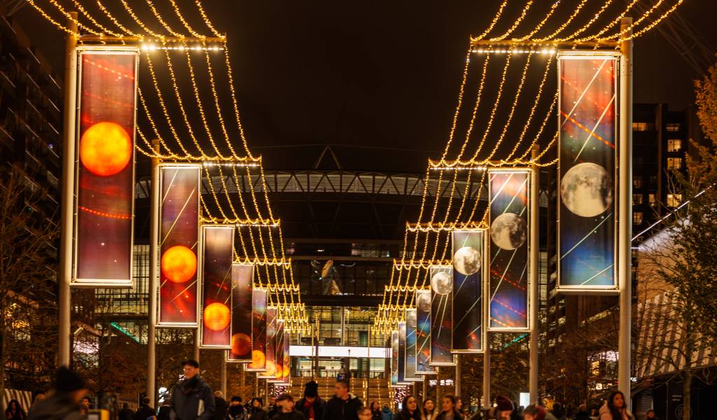 Wembley Park has announced the return of the large-scale, site-specific commission ‘A Guiding Light’ to the area’s public Art Trail this winter, transforming Olympic Way into an immersive canvas of light, colour and movement.