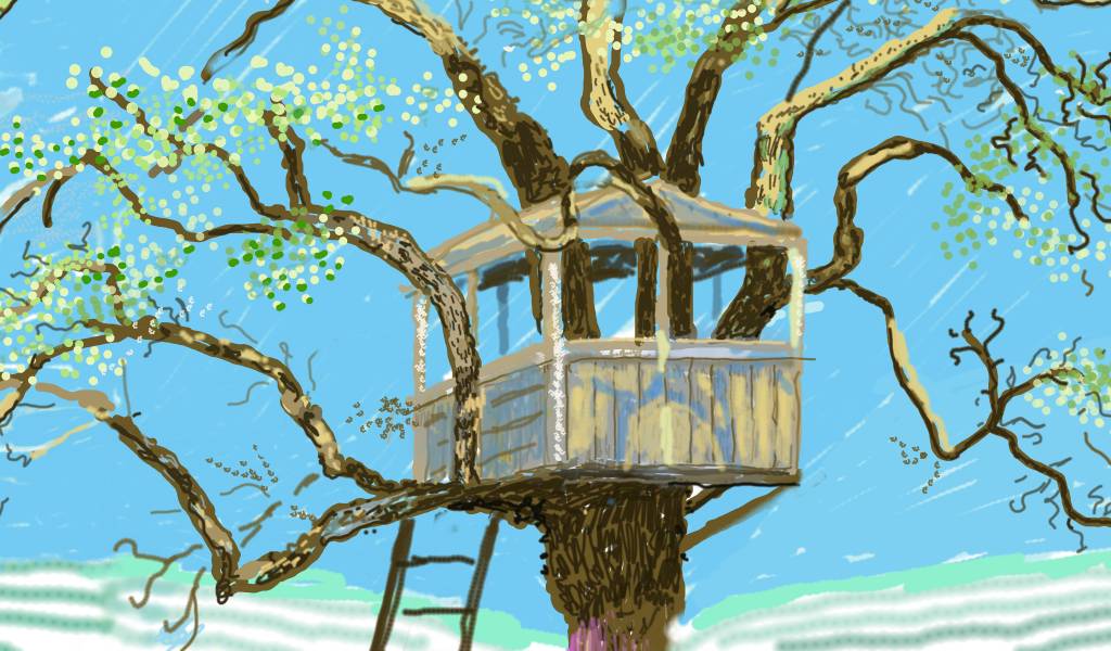 Accompanying the exhibition, Serpentine will present a large-scale printed mural by David Hockney in the garden at Serpentine North. The work highlights a scene from A Year in Normandie’s spring cycle depicting a tree house. The monumental digital print will be displayed at the back of the North Gallery, echoing its creation in David Hockney’s own garden in Normandy.